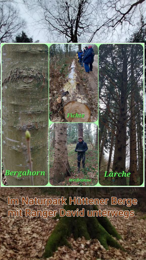 Bei perfektem Winterwetter führten die beiden uns durch die Natur. Anschaulich erhielten wir Informationen über die unterschiedlichen Laub- und Nadelbäume, über Zapfen, Triebe, Borke und Blätter. Auch der Bericht über den „Kampf“ ums Überleben der zahlreichen Baumkulturen im Wald brachte uns immer wieder zum Staunen.
