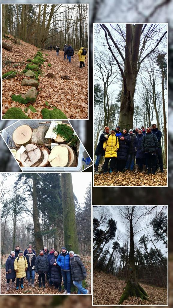 Bei perfektem Winterwetter führten die beiden uns durch die Natur. Anschaulich erhielten wir Informationen über die unterschiedlichen Laub- und Nadelbäume, über Zapfen, Triebe, Borke und Blätter. Auch der Bericht über den „Kampf“ ums Überleben der zahlreichen Baumkulturen im Wald brachte uns immer wieder zum Staunen.