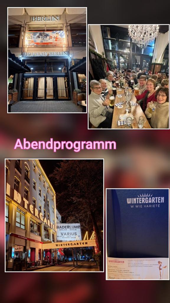 Am Mittwochmorgen, d. 21. Januar 2026 sind 24 LandFrauen und 3 LandMänner aus Hohn, Kirsten, Karin, Michaela, Uta und Sigrid vom Hamdorfer LF-Verein und 4 LandFrauen aus Rendsburg Richtung Berlin gestartet. Bedingt durch das Wetter und die Umleitungen, die wir fahren mussten, waren wir erst gegen 15:00 Uhr in Berlin. Am Berliner Zoo gab es den ersten gemeinsamen Imbiss, eine echte Berliner Currywurst am Berliner Ur-Stand „Curry 36“. Danach erreichten wir unser Hotel „Park Inn by Raddisson“ am Alexanderplatz. Einige erkundeten dann gleich den Alexanderplatz, andere genossen die Aussicht über Berlin von der Dachterrasse unseres Hotels (35. Etage plus 80 Stufen aufwärts). Abends trafen wir uns alle zu einem gemeinsamen Abendessen im Restaurant „Hofbräu Berlin“.